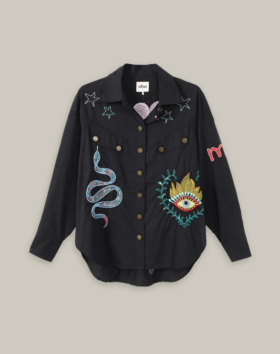 Adelyne Denim Emb Shirt Black